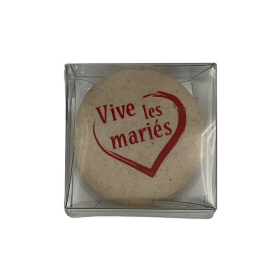 Cadeau Prêt à Offrir : Le macaron est soigneusement disposé dans la boîte, prêt à être offert à vos invités. Il peut être placé sur les tables ou dans des paniers de cadeaux.